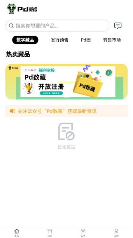 Pd数藏app这里经常被很多数字收藏用户们使用,各位直接在这里就可以找到更多优选的高品质数藏,你们都能够更快的获得喜欢的藏品资源,在这里享受更多丰富的数藏文化,有需要的话直接前来下载使用起来会更加的简单,你们也都可以更好的去选择其他的优质数藏哦。