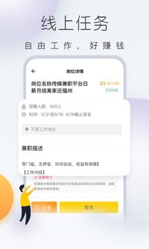 3.这是一个非常简单的在线兼职平台。软件每个人都可以找到自己需要的任务,完成兼职内容后可以获得报酬。