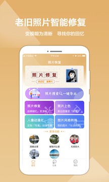 图片修复精灵是一款可以快速带来各种图片服务的手机图片编辑类软件,图片修复精灵是软件可以在线提供优质图片编辑功能,所有功能都是可以自由使用的,每一种滤镜的效果都是不相同的,让你可以随时在线进行使用,可以快速下载这款软件来使用。