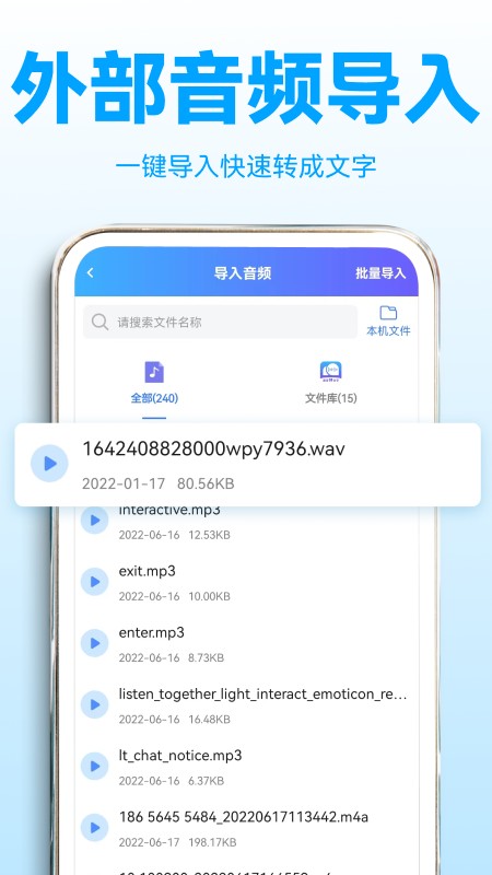 导入外部音频文件,将音频快速转成文字,可以复制、编辑及导出word、txt等格。