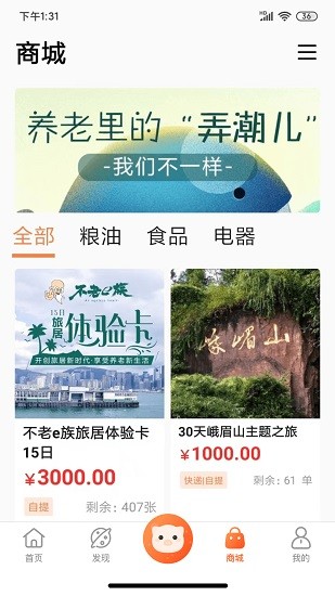 不老e族服务于全国的中老年人,在这里拥有丰富的旅居养老套餐,用户们可以根据需求来选择,每个套餐都有详细的介绍可以查看,而且价格也是有清晰的标价的,线上还能在线购买生活日用品,让老年人生活更方便。