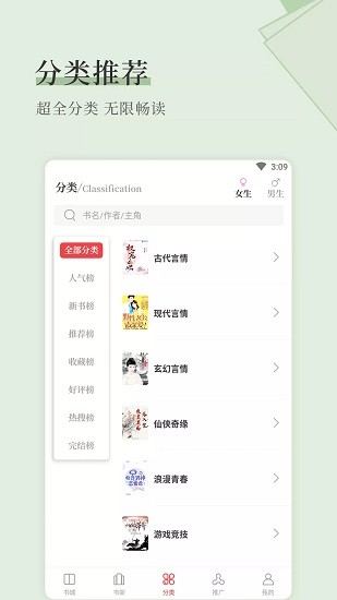 1、可以为男生和女生精选各种小说,还能让你发现潜力小说。