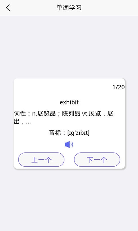 2.【记忆模式】点击开始学习,进入单词记忆模式。 词性、音标、发音都有专业的解释。