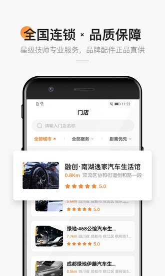 1、全国的养车连锁门店在这里都能找到,能显示具体的地址。