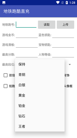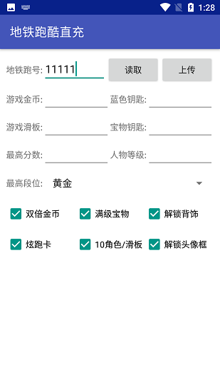 地铁跑酷直充器安卓版武汉专门为地铁跑酷游戏打造的辅助工具,线上的操作流程非常的轻松,输入自己的地铁跑号就能快速读取账号的数据,你可以在线直接修改各种数据,让你打开游戏就能快速的生效了,快速的进行游玩。
