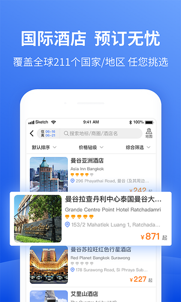 3、在线搜索目的地的酒店都很方便的,想怎么预订酒店房间都支持得。