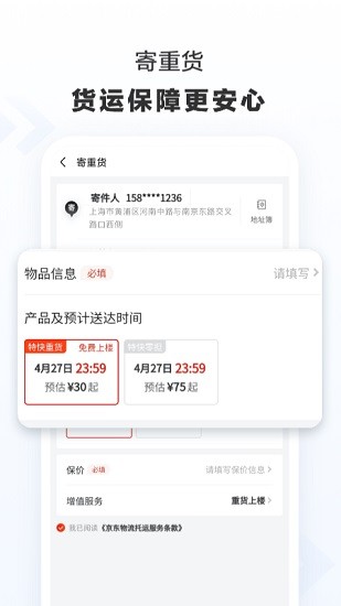 京东快递可以让大家享受到极速的配送体验,在这里可以寄取任何的快递,让你寄送全国的哪里都是可以的,让大家实时的下单,而且还可以让快递员上门取包裹,使用起来非常方便,大家还可以实时的查看物流的信息。