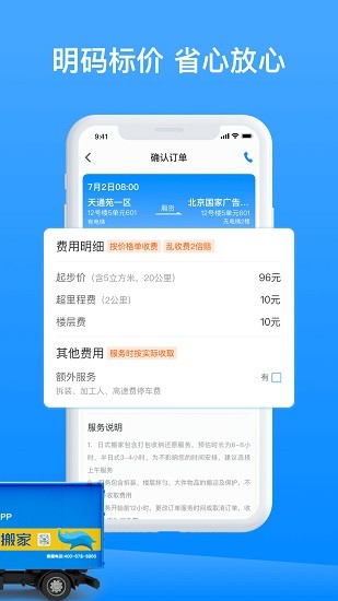 3、所有的搬家费用都是直接标价的,各项服务的价格都能清晰显示。