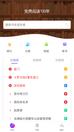 3、全网热门的小说在首页上为你显示,都是实时统计热度,能及时了解。