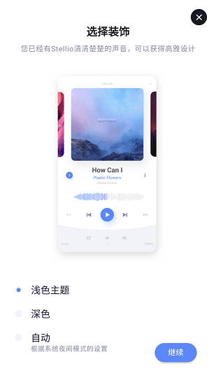 1、打开Stellio Player后,可以选择主题,有白色、深色和自动主题三种可选。
