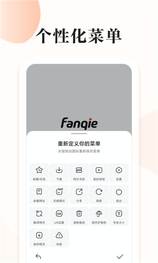 自定义浏览器UA;自定义搜索引擎;广告标记拦截;书签导入导出;强迫症选项
