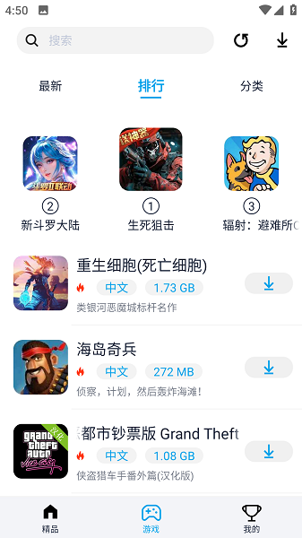 4、查看游戏的排行也是非常的轻松的,可以快速的更新游戏榜单。