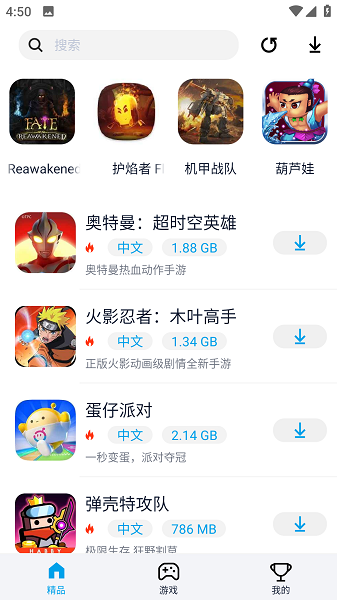 2、可以自由的搜索想要玩的游戏,快速显示对应游戏,极速下载。