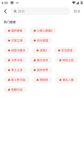 3、显示近期的热门游戏,还可以显示近期热门搜索,实时的查看。