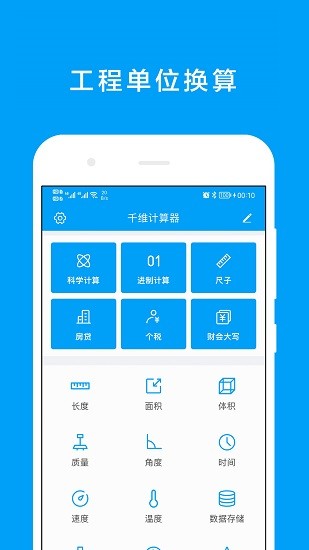 千维计算器app在这里基本上什么都可以计算,在生活中或者学习中亦或是工作中使用可以减轻大家的计算压力,根据自己的计算需求选择对应的工具,还可以进行单位的转换,也可以各种货币的汇率等,让大家计算什么都非常的轻松。