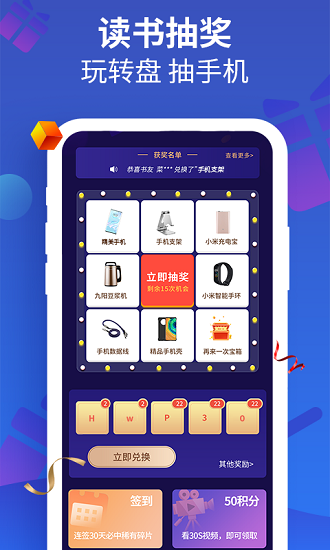 1、为大家带来了超多的看书福利,不仅可以免费看书还可以抽奖。