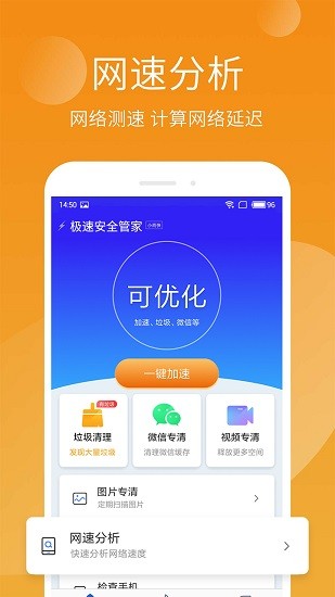 极速安全管家app专门为清理手机垃圾文件打造的软件,能够时刻的优化大家手机,每天都可以极速清理垃圾文件。可以在这里使用各种其它的小工具,比如网络测试以及手机降温,还有极速查杀等实用的小工具。