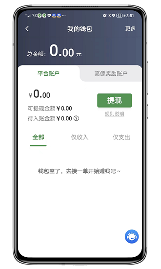 4、各位司机每天可以查看自己接取订单数量,还有总营收。