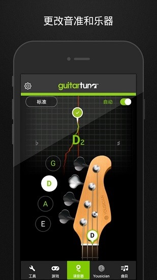 GuitarTuna是专门为各种乐器打造的手机调音器,能够乐器初学者和高手都可以轻松的使用,帮助大家调出各种各样的音,能够及时的切换不同的乐器进行调节,根据自己的学习需求能够进行精准的调节,还可以开启自动调音。