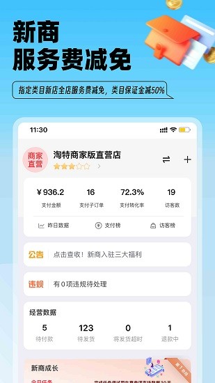 指定类目新店全店服务费减免,类目保证金减50%,另享300元推广券。打开淘特商家版APP,极速开新店。