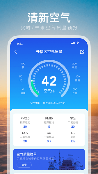 3、响应速度快、运行稳定,支持离线查看当日天气概况,即便在网络不稳定的情况下也能保障基本使用需求,自由的使用。
