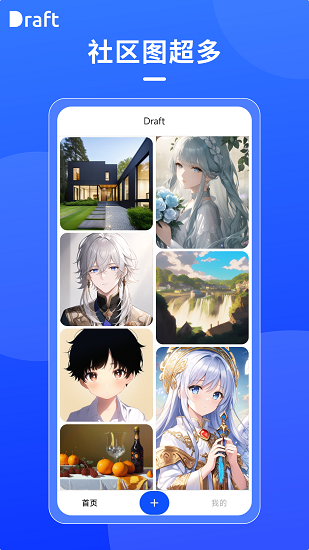 draft.art绘画软件可以帮助大家用AI来画画,你想在这里生成什么样子的图都是可以的,能够发挥子的脑中所想,详细描述画面,让AI快速的为你进行绘画。线上的模型非常的多样,每次都可以让大家自由的选择,生成的效果都是不一样的。