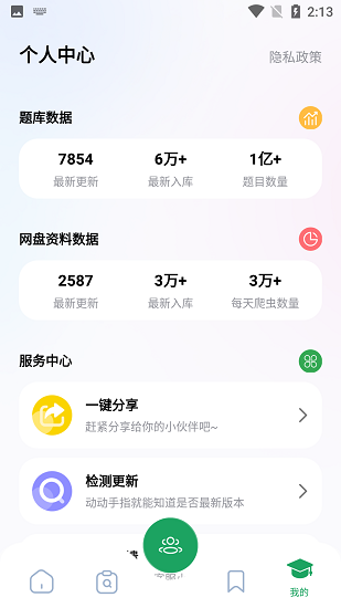 4、每天更新的学习资料数据都会显示在个人中心,让大家及时查看。