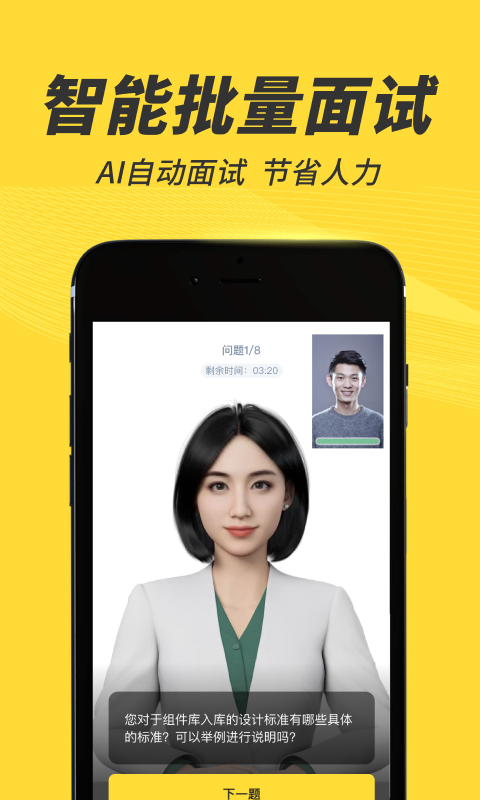具备流畅的应答能力和追问能力,7X24小时帮助企业自动面试及答疑,节省人力。