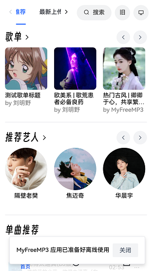 myfreemp3手机版可以让大家在这里自由的听歌,所有的音乐都能免费的进行收听,每日都在上新超多的音乐,你可以通过歌单或者歌手来收听各种音乐,所有的音质都是非常高的,让大家在这里都能自由的点播。