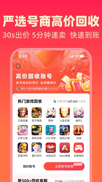 3、可以让大家快速回收任意游戏账号,轻松出售自己的闲置账号。