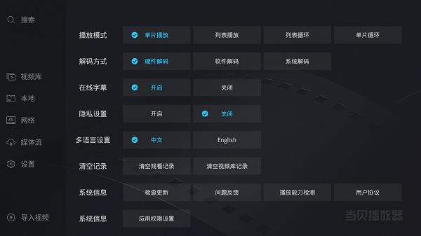 当贝播放器安装包可以直接推送到电视上进行安装,让大家可以本地看各种视频,全部的功能免费使用,支持超多的视频格式,让大家连接各种设备播放超多的视频,每次点播起来也是超级方便的,播放起来也是非常流畅的。