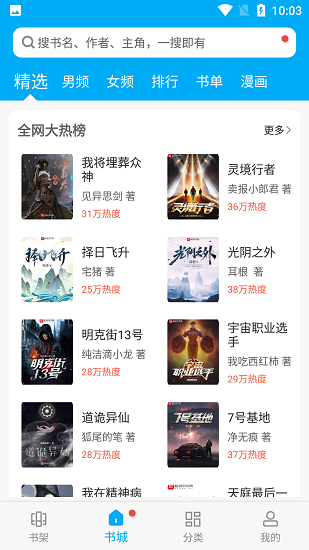 3、线上为小说和漫画进行了非常全面的划分,日常查找资源更加轻松。