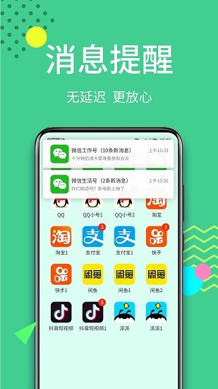 1、随时随地在这里创建超多的软件的分身,每个分身都独立操作。