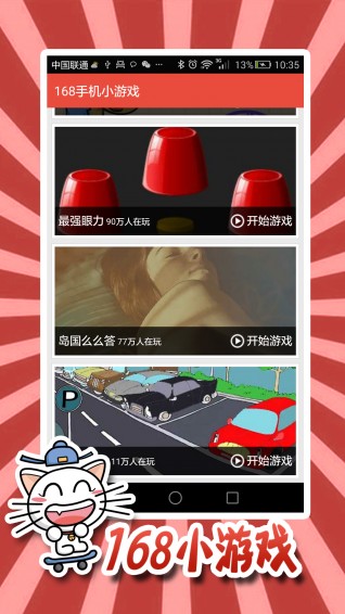 168小游戏官方版是一款比较好玩的游戏盒子app,与亲朋好友们一起体验,喜欢的朋友们快来尝试把,玩法比较的丰富精彩,大量的类型可以选择,赶紧来尝试把,考验玩家的眼里、身手,趣味精彩的挑战,全新的小游戏来临,每天都不孤单。