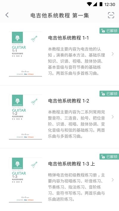 终端吉他课程内容的手机软件,这里有着教材中所有的示范音频和伴奏音频,大量的国外大师曲目分段进阶学习视频演出比赛等活动进行高效辅导。任意选择示范或伴奏、提速或降速、独特的线上线下辅助学习模式让练习过程充满乐趣。