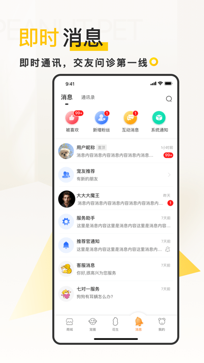 花生宠物官方版是一款为你的宠物专门服务的平台,这里有着独特的服务体系,在这里你能够享受到宠物的一站式服务,整个覆盖了宠物的生命周期,还能与你的养宠物的好友一起分享宠物趣闻,养宠物的冷知识,喜欢养宠物的朋友快来下载吧!