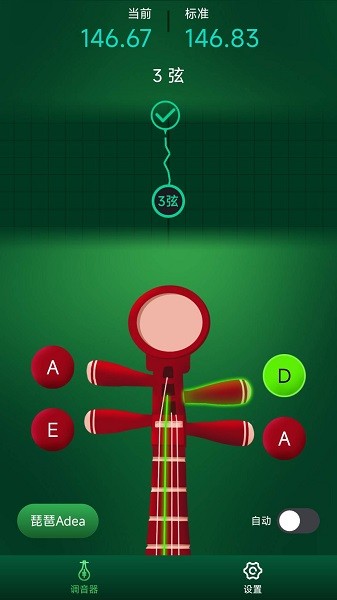 用户可以选择自动模式让应用程序通过手机麦克风智能识别并调整琵琶的音高,也可以选择手动模式进行更精细的调整。