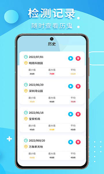 3.也能够及时的查看到很多历史的检测记录,快速响应分贝变化。