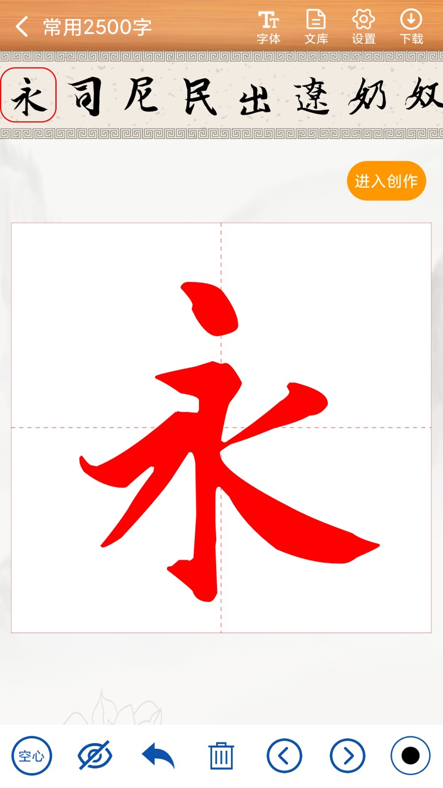 2、能够让大家查找各种练字的文库,选择之后就可以生成对应的字帖。