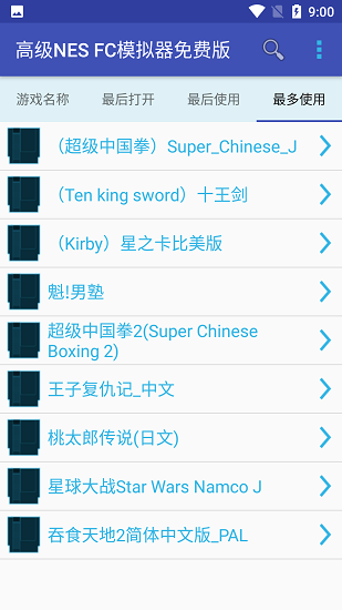高级NES FC模拟器可以让大家在这里免费玩超多的FC游戏,里面收录的游戏多种多样,让大家可以在线轻松的进行玩耍。在这里每次开启游戏都是非常快速的,还可以显示大家近期玩过的游戏,下次打开也非常方便。