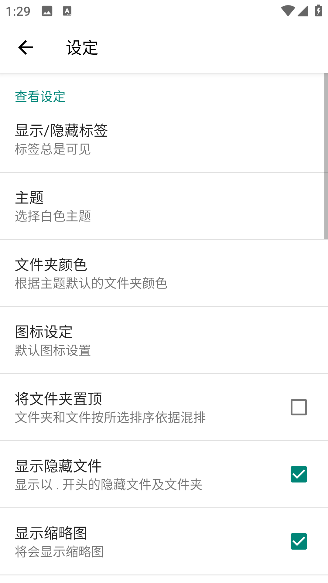 9、显示隐藏文件和文件夹、图像缩略图、显示APK文件的图标。