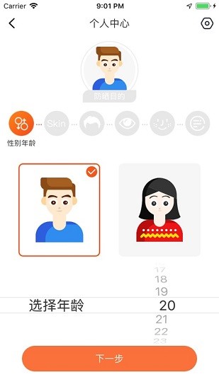1、在这里可以选择性别和年龄,让大家都可以自由使用这个相机工具。