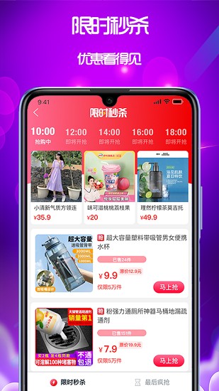 3、各种限时秒杀的产品都可以及时的参与,每天极速秒杀超多产品。