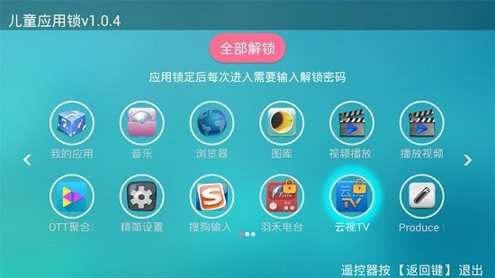 儿童应用锁tv版是专门为真的电视打造的工具,让各位家长可以严格控制孩子们看电视的时间,智能输入正确的密码才可以进入电视,让家长都可以设置各种密码锁定电视,使用起来还是比较方便的,设置也能及时的生效。