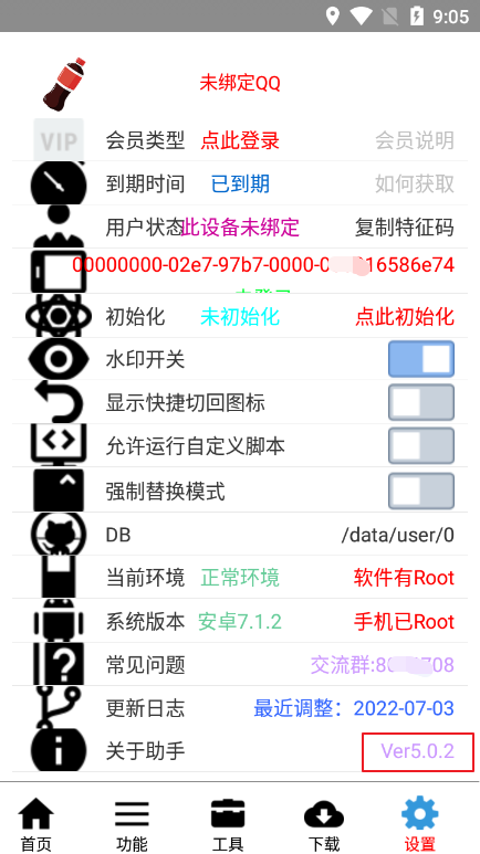 1、打开手机上的可乐助手最新版本,退出正在运行的游戏,在首页点击【初始化】功能。
