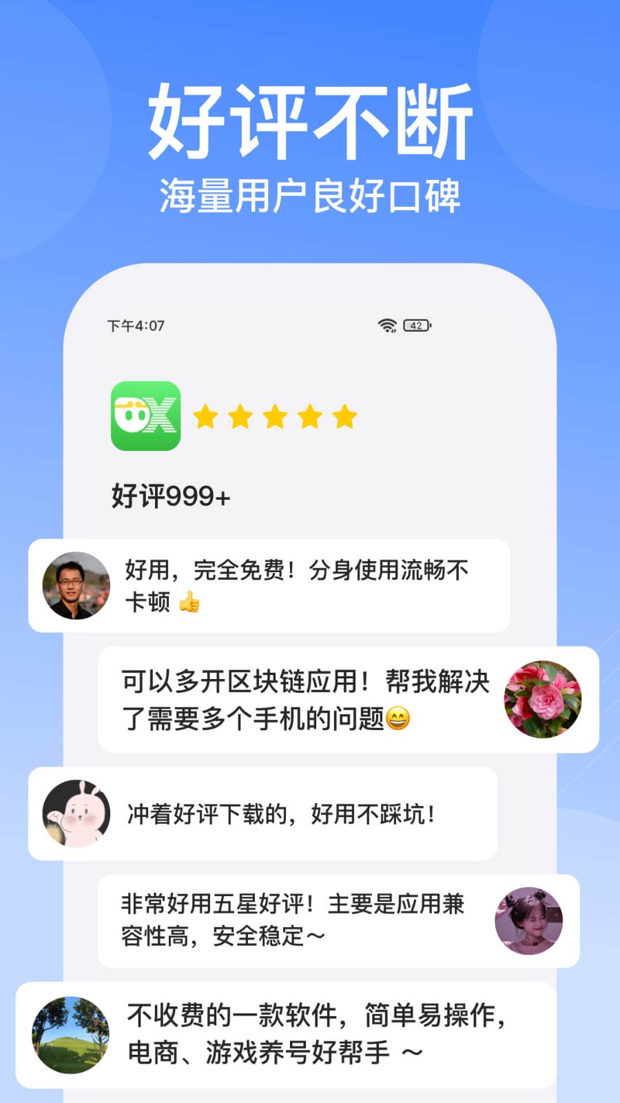 1.不收取任何费用的多开分身,分身支持微信分身版的免费版多开分身应用