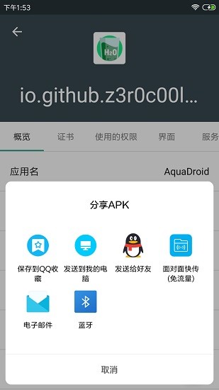 3、可以在这里提取手机上所有软件的安装包,能极速的进行分享。