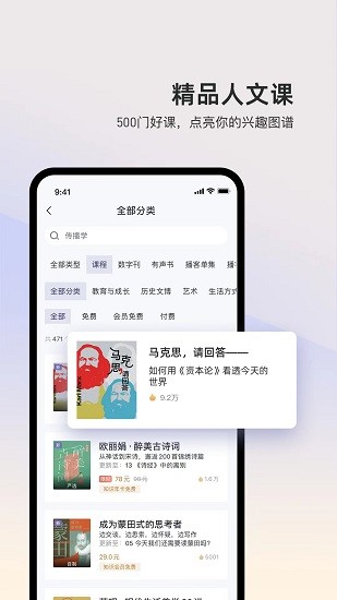 3、带来了超级多的精品人文课程,让大家选择自己感兴趣的课进行学习。