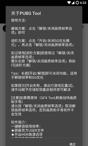 注意:如需使用(GFX Tool,画质助手等),请长按解锁/关闭画质帧率取消解锁画质帧率选项,否则画质助手等软件不会生效。
