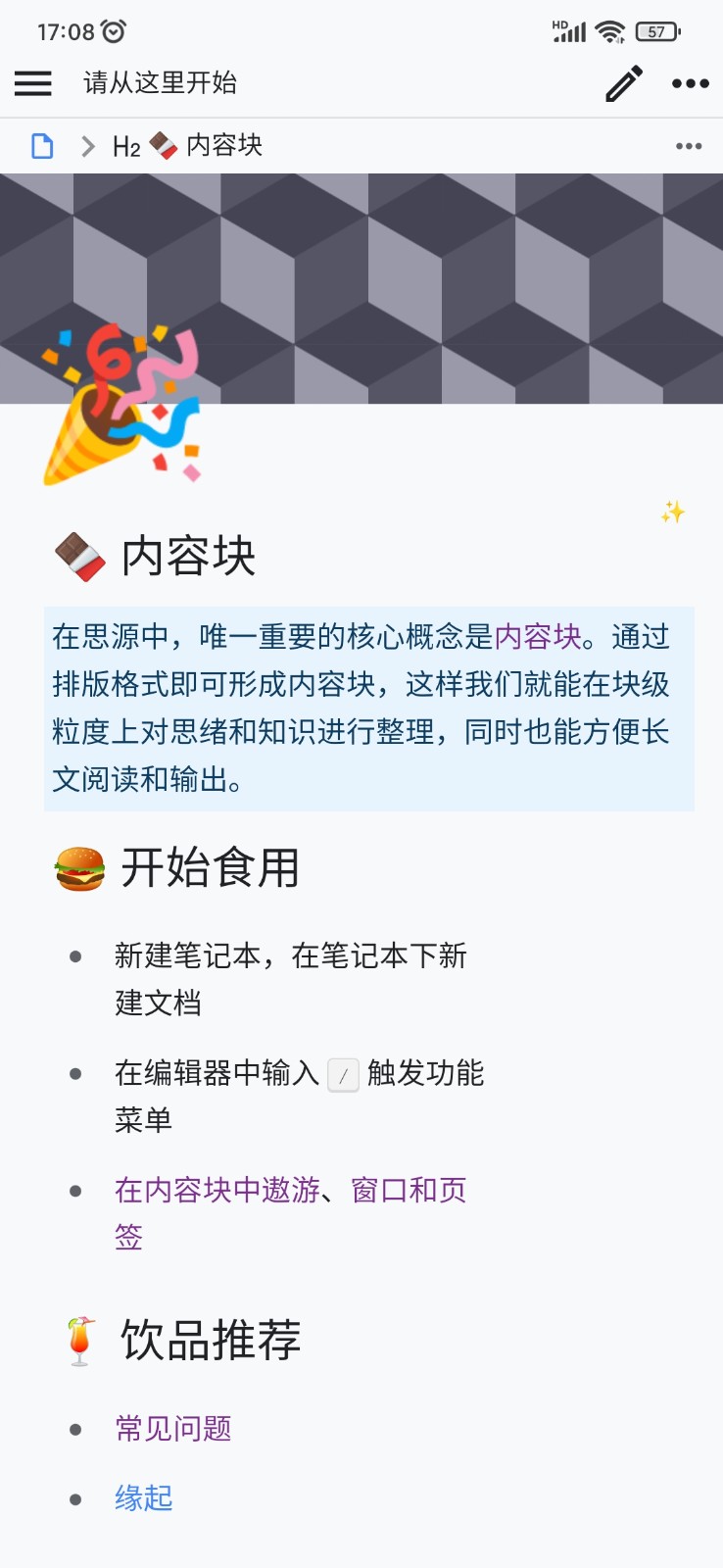 在思源中,唯一重要的核心概念是内容块。通过排版格式即可形成内容块,这样我们就能在块级粒度上对思绪和知识进行整理,同时也能方便长文阅读和输出。